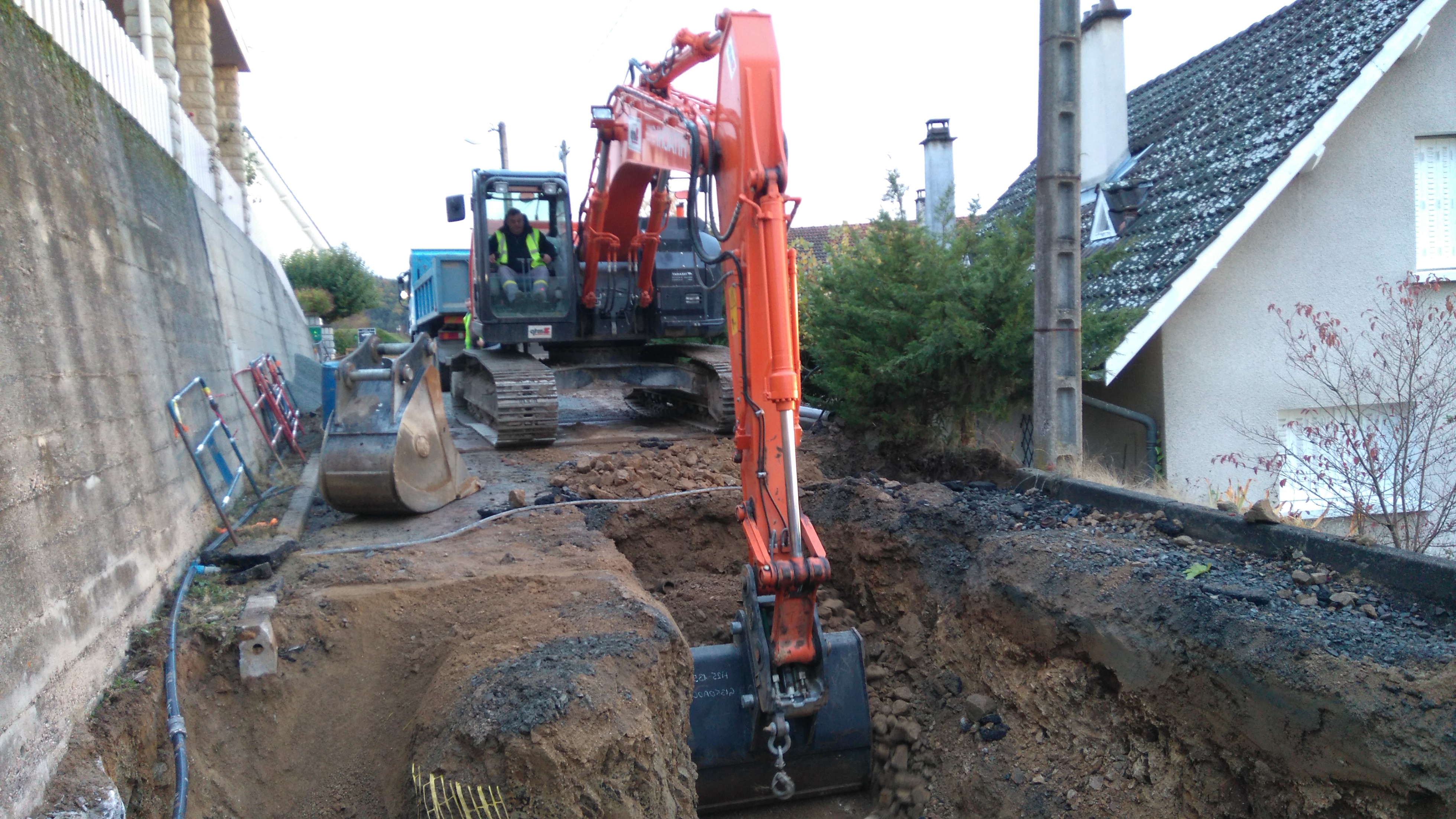 Activité : Pose de canalisations d'eau potable, eaux usées et eaux pluviales. Utilisation d'une dameuse et d'une scie circulaire.