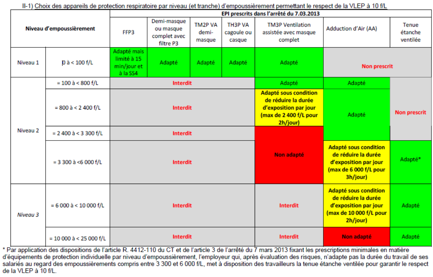 - Choix de la protection respiratoire (arrêté du 7 mars 2013):