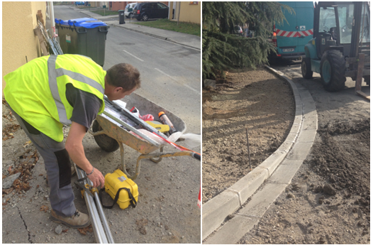- Pose des bordures (Voir fiche ➡ Poseur de bordures), des dalles ou des pavés (chaussée, trottoirs)