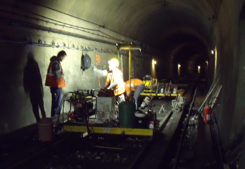 L’entretien se fait principalement de nuit entre deux coupures de circulation et courant électrique. L’équipe (varie entre 10 et 15 personnes) regroupe des opérateurs de maintenance de voies ferrées, des chauffeurs de train travaux, conducteurs d’engins sur rails (levage ou ramassage) et des binômes de soudeurs. Rarement des maçons génie civil, des monteurs en signalisation ou électriciens, personnel d’entreprise de transport urbain (RATP,…) pour acheminement et surveillance travaux.